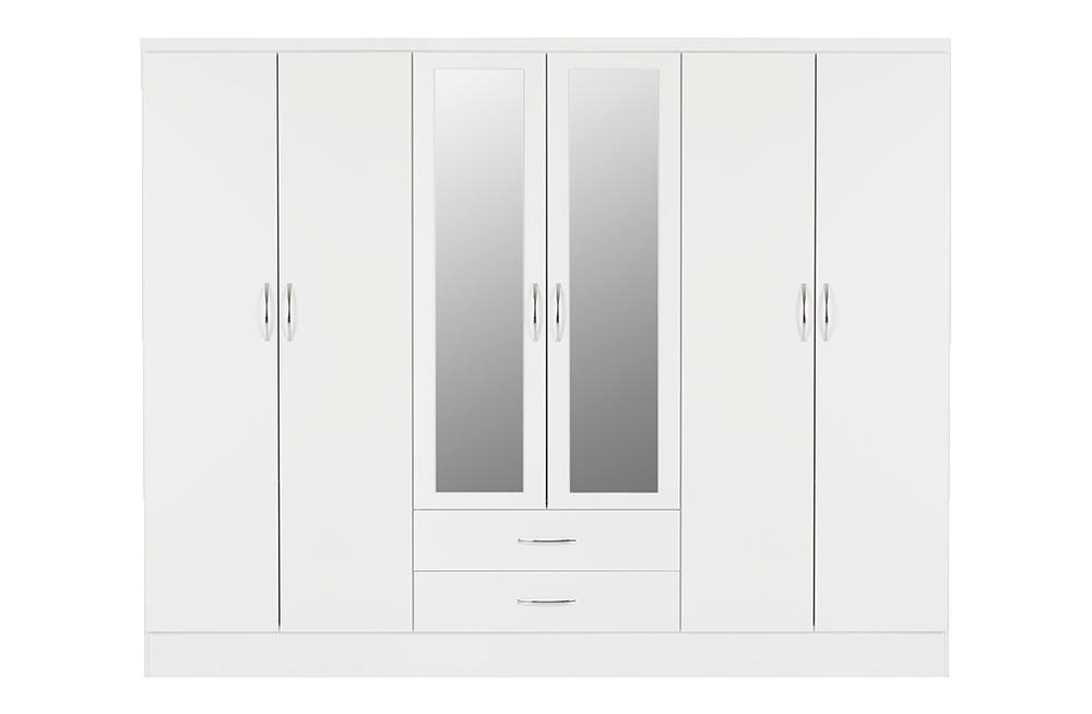 Nevada 6 Door 2 Drawer Mirrored Wardrobe White Gloss